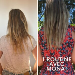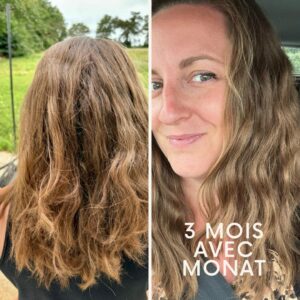 Monat est la seule marque à proposer des soins anti-âge du cuir chevelu (le cuir chevelu vieilli 6 fois plus vite que la peau du visage!) d’où l’interet d’en prendre soin!
